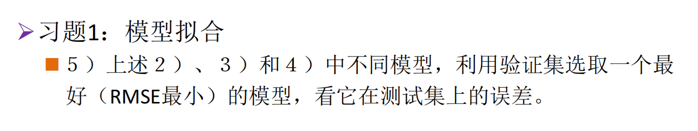 对于(2)-(4)的三种模型,选取验证集上RMSE最小的,计算对应模型在测试集上的RMSE: