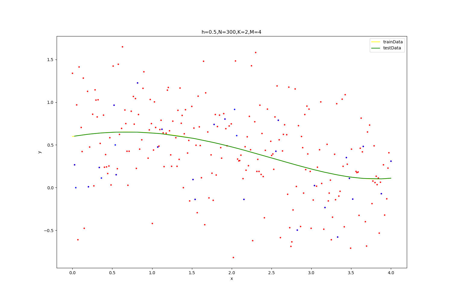 | optimal result:0.43966680795335106,K=1,M=4 拟合参数为(wij,ai,bi): [-2.67613022e+02 4.41099471e+02 -5.74683063e+02 1.02026656e+03 -5.72899644e+02 -7.29986181e+00 -7.36054845e-01 1.39984394e+00 -7.81911683e-01 -4.37508983e-01]