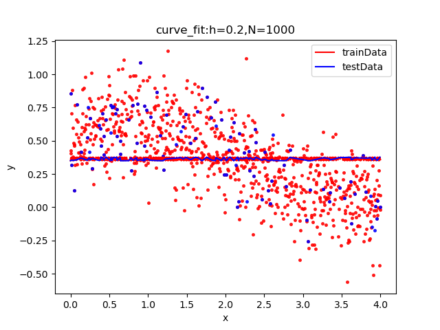 | curve_fit拟合: [-0.01377563 0.36384608] rmseTrain: 0.2993405343270346 rmseTest: 0.29352661180630557